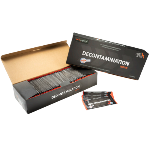 Dekontaminaatiopyyhkeet yksinkertaisesti auttaa poistamaan karsinogeeniset nokihiukkaset ja palojäämät iholta. Kostutetut pyyhkeemme on valmistettu kovasta fleecemateriaalista. Ne liuottavat jopa 90 % kaikista tulipalon aikana vapautuvista kemikaaleista ja samalla poistavat bakteereja. Käytä tätä tuotetta ensimmäisten 15 minuutin aikana työn jälkeen varmistaaksesi, että ihosi ei ime haitallisia kemikaaleja. Dekontaminaatiopyyhkeet ovat raikastuoksuisia ja sopivat erittäin hyvin herkälle iholle. Ne eivät ole ärsyttäviä. Pyyhkeet on pakattu yksittäin ja niitä on saatavana 125 kappaleen laatikoissa.