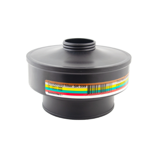 SR 599 -yhdistelmäsuodatin on tarkoitettu käytettäväksi SR 500-/SR 500 EX -puhaltimessa. Suodatin on tyyppiä A1BE2K1-Hg-P3 R ja se suojaa seuraavantyyppisiltä kaasuilta ja höyryiltä: Tyyppi A suojaa orgaanisilta kaasuilta ja höyryiltä, kuten liuottimilta, joiden kiehumispiste > +65 °C. Tyyppi B suojaa epäorgaanisilta kaasuilta ja höyryiltä, kuten kloori, rikkivety ja syaanivety. Tyyppi E suojaa happamilta kaasuilta ja höyryiltä, kuten rikkidioksidilta ja fluorivedyltä. Tyyppi K suojaa ammoniakilta ja tietyiltä amiineilta, kuten etyleenidiamiini. Tyyppi Hg suojaa elohopeahöyryltä.