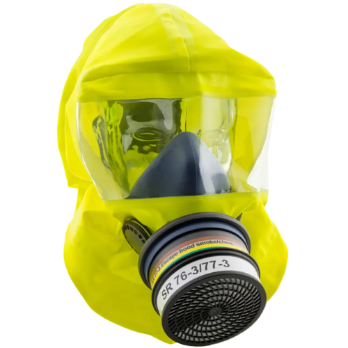 Pakohuppu SR 77-3 ABEK1-CO-P3 Smoke on hengityssuojain, joka on tarkoitettu käytettäväksi evakuoinnissa tulipalojen tai kemikaalionnettomuuksien yhteydessä. Matalan vastuksen venttiilit ja suodattimet minimoivat rasituksen vaikeissa olosuhteissa. Huomautus: Vain happipitoisissa ympäristöissä pakenemiseen.