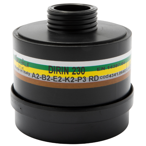 Yhdistelmäsuodatin orgaanisille höyryille, joiden kiehumispiste on yli 65 °C, epäorgaanisille kaasuille ja höyryille, rikkidioksidille (SO2), ammoniakille (NH3) ja sen johdannaisille, pölyille, höyryille ja sumuille.