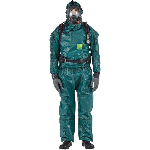AlphaTec 4000 malli 151-G02 Kertakäyttöinen kemikaalisuojapuku, koko L, hupulla, sukilla ja käsineillä. Erikoissuojaus : AlphaTec® 4000 - malli 151-G02 on raskas suojapuku, joka on testattu suojaamaan yli 200 kemikaalia vastaan*, kemikaaleista ja biologisista vaaroista kemiallisiin taisteluaineisiin. *CE-kategoria III tyyppi 3/4/5 suojaus. Parempiistuvuus: Neopreenisen kumisen kasvotiivisteen ansiosta tämä kemikaaleilta suojaava puku istuu tiiviisti kokokasvohengityssuojaimiin.