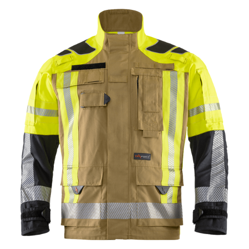 FIRE RECON THL -sarjallaan TEXPORT tarjoaa tällä hetkellä saatavilla olevan korkeimman teknisen standardin ja nostaa riman mukavuuden ja istuvuuden suhteen. Yksikerroksinen rakenne varmistaa erinomaisen hengittävyyden. Tämä on erityisen tärkeää kosteuden, kuten hien, optimaalisen siirtämisen kannalta pois kehosta, mikä ylläpitää käyttäjän suorituskykyä. Samalla tämä vähentää kehon ylikuumenemisen riskiä. Takin ja housujen tiiviiksi suojakokonaisuudeksi liittäminen estää nousevan lämmön ja muiden vaarallisten aineiden tunkeutumisen. Myös housujen helman ja hihansuiden säädettävät kiristykset auttavat tässä, tarjoten käyttäjälle optimaalisen suojan teknisen avun erityisvaatimuksissa. HiVis keltaisen värin ansiosta ihmissiluetti näkyy optimaalisesti pimeässä ja huonolla säällä. Kevyeksi vaatetukseksi suunniteltu FIRE RECON THL soveltuu myös metsä- ja kasvillisuuspalojen sammuttamiseen.