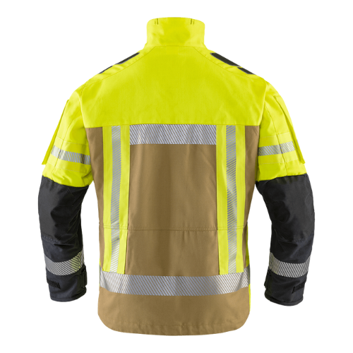 FIRE RECON THL -sarjallaan TEXPORT tarjoaa tällä hetkellä saatavilla olevan korkeimman teknisen standardin ja nostaa riman mukavuuden ja istuvuuden suhteen. Yksikerroksinen rakenne varmistaa erinomaisen hengittävyyden. Tämä on erityisen tärkeää kosteuden, kuten hien, optimaalisen siirtämisen kannalta pois kehosta, mikä ylläpitää käyttäjän suorituskykyä. Samalla tämä vähentää kehon ylikuumenemisen riskiä. Takin ja housujen tiiviiksi suojakokonaisuudeksi liittäminen estää nousevan lämmön ja muiden vaarallisten aineiden tunkeutumisen. Myös housujen helman ja hihansuiden säädettävät kiristykset auttavat tässä, tarjoten käyttäjälle optimaalisen suojan teknisen avun erityisvaatimuksissa. HiVis keltaisen värin ansiosta ihmissiluetti näkyy optimaalisesti pimeässä ja huonolla säällä. Kevyeksi vaatetukseksi suunniteltu FIRE RECON THL soveltuu myös metsä- ja kasvillisuuspalojen sammuttamiseen.