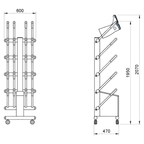 Valikoimassa erikokoisia kuivaustelineitä 5-50 parille. Valikoimassa myös täysin ruostumattomasta teräksestä valmistetut mallit.