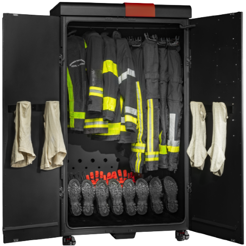 Novven 3 -otsonoiva kuivauskaappi varmistaa sammutusvarusteiden puhdistuksen, desinfioinnin, kuivauksen ja hajunpoiston. Kaapin patentoitu Smart Air Care -teknologia vähentää epäpuhtauksia (PAH-yhdisteet), pienentää kontaminaatioriskiä, varmistaa täydellisen kuivumisen ja pidentää henkilösuojainten käyttöikää.