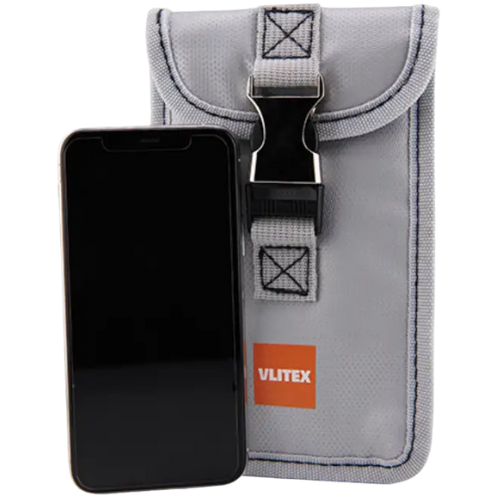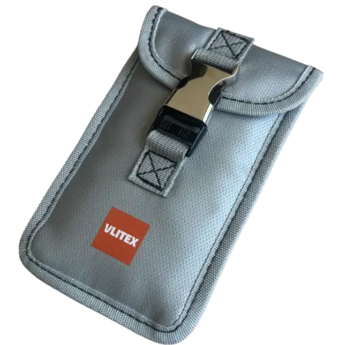 VLITEX Fire Pouch S, esim. matkapuhelimelle. Suunniteltu litiumioniakkujen palojen tilapäiseen rajoittamiseen ja hallintaan.