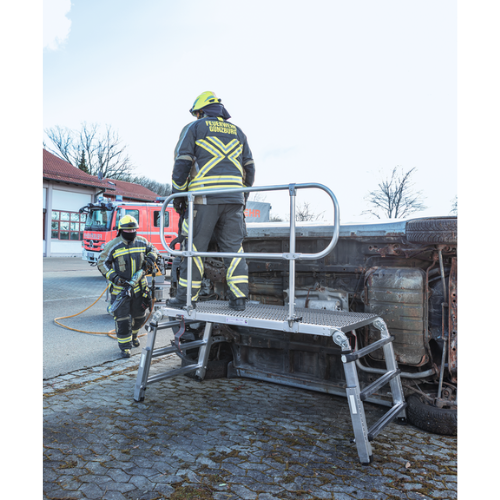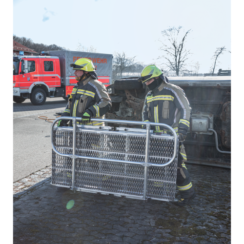 DIN14830 mukainen pelastustaso. Loukkaantuneiden pelastamiseen kuorma-autoista, linja-autoista ja junista. Voidaan käyttää myös työtasona. Tukeva alumiinirakenne.