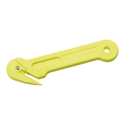 Erittäin kestävä turvavyöleikkuri, jossa on vahvistettu neonkeltainen ABS-kahva ja vahva, rungossa suojattu terä