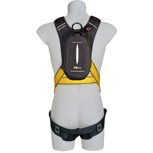 Kevyt, huomaamaton pelastuslaite sisältyy pieneen reppuun, joka on kiinnitetty kokovartalovaljaisiin ja on suunniteltu käytettäväksi yhdessä putoamissuojajärjestelmän tai ankkuripisteen kanssa.